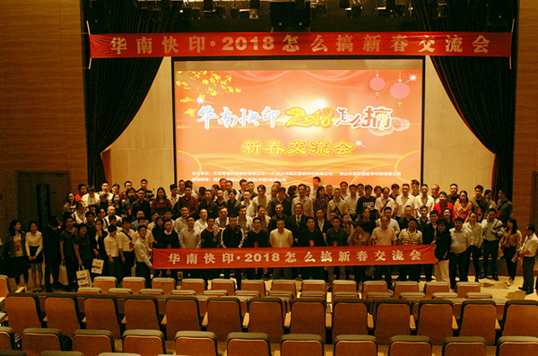 2018年3月5日,由天意有福主辦、大洋圖文、富麗圖快印聯(lián)合協(xié)辦的主題為“華南快印2018怎么搞交流會”在廣州市黃埔區(qū)保利假日酒店報告廳隆重舉行。天意有福副總經(jīng)理董祖明、王亦兵、吳楊文,富麗圖快印總經(jīng)理束永春,柯尼卡美能達梁曉麟,大洋圖文總經(jīng)理陳育明,悟空快印劉敏,六九快印曾中輝,點源科技總經(jīng)理何根山等13位嘉賓出席了此次會議。下午13點30分,柯尼卡美能達梁曉麟先生致辭,宣布會議開始,近兩百家快印企業(yè)代表針對行業(yè)趨勢、互聯(lián)網(wǎng)技術(shù)應(yīng)用以及未來發(fā)展方向等話題,結(jié)合本公司經(jīng)營策略展開了精彩的行業(yè)對話。