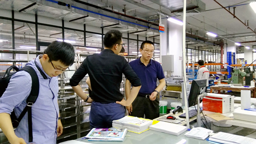 2018年4月12日,中國印刷技術研究院-數(shù)字印刷事業(yè)部總經(jīng)理郭春濤一行四人來訪天意有福,在副總經(jīng)理董祖明的帶領下參觀了天意有福生產(chǎn)中心。隨后進入會議室,雙方就數(shù)字印刷技術發(fā)展與行業(yè)合作展開了深入的交流。